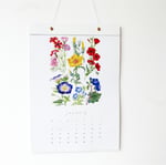 This calendar features a unique cardboard binding strip along the top of the calendar along with brass split pins and cotton string for hanging. Simply pop the pins out to change the month over.