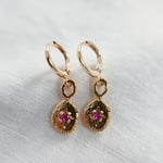 Beautiful gold plated charms with zirconia gemstones on gold plated lever back hoops. Available in two colours - Forest and Rose.